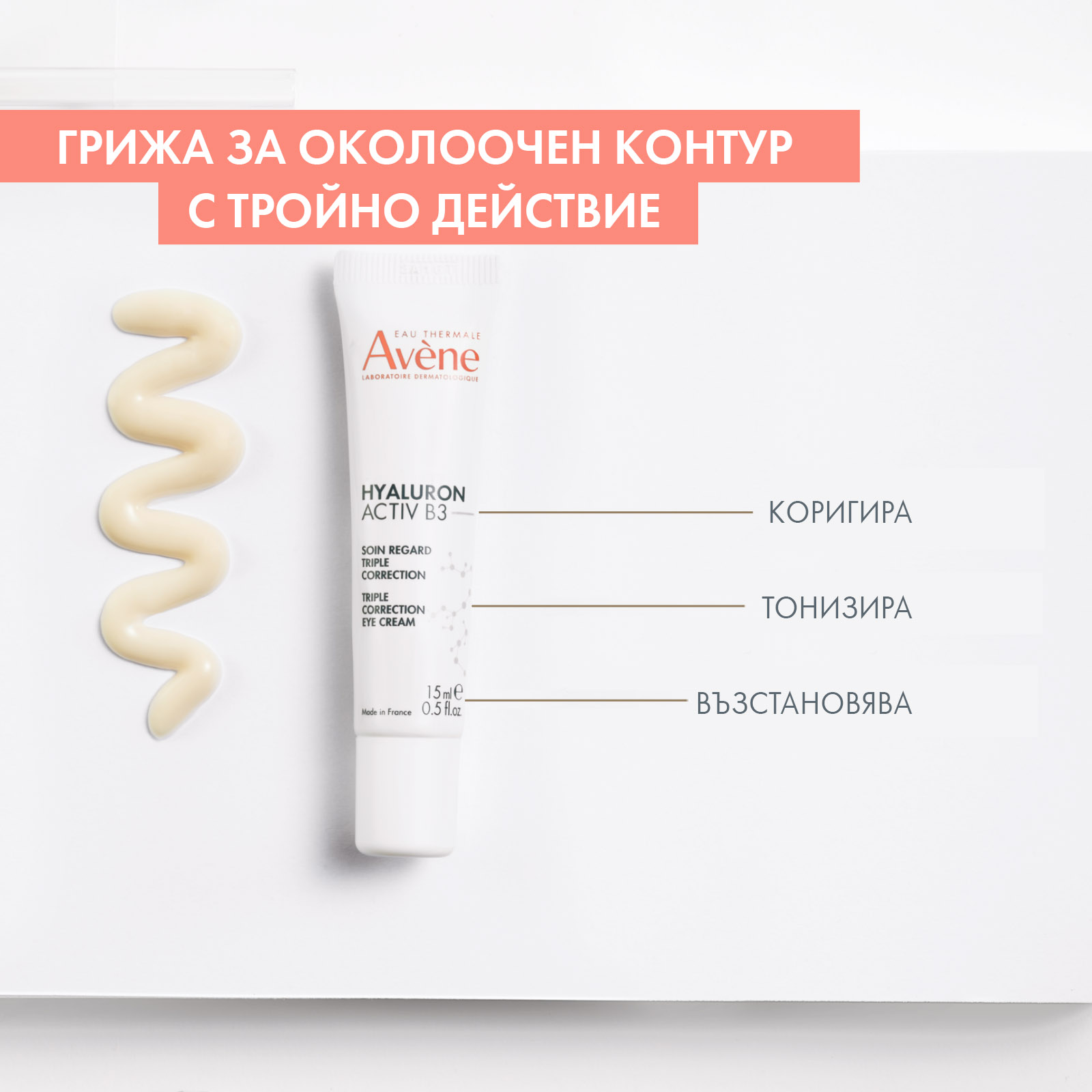 AVENE HYALURON ACTIV B3 грижа за околоочен контур с хиалуронова киселина и ниацинамид с тройно дейстивие 15ml