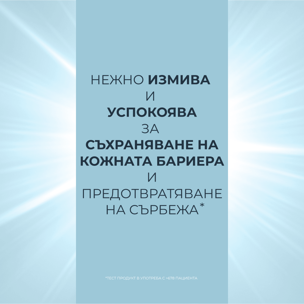 Нежната формула без сапун и на маслена основа е обогатена с висока концентрация на липиди (Омега 3 и 6 мастни киселини), съхранявайки кожната бариера и предпазвайки кожата от последващо изсушаване.
