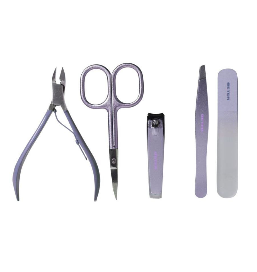 Complete manicure set in a beautiful case, contains nail scissors, cuticle scissors, tweezers, tempered glass nail file and nail clippers. The ideal gift for any occasion: birthdays, Christmas, special occasions or an original surprise