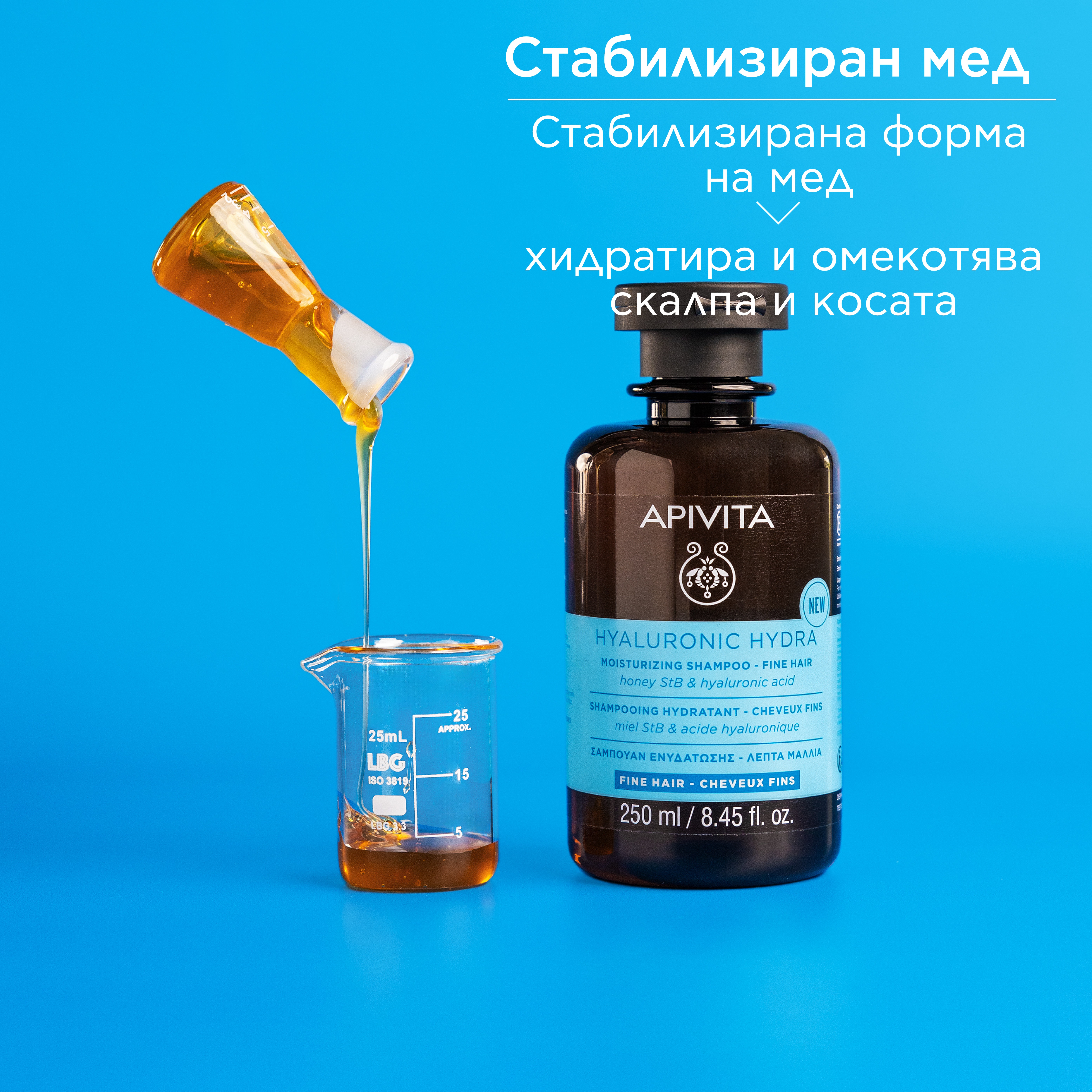 Intensively hydrates in depth and softens hair, thanks to the stabilized form of honey in combination with low molecular weight hyaluronic acid.