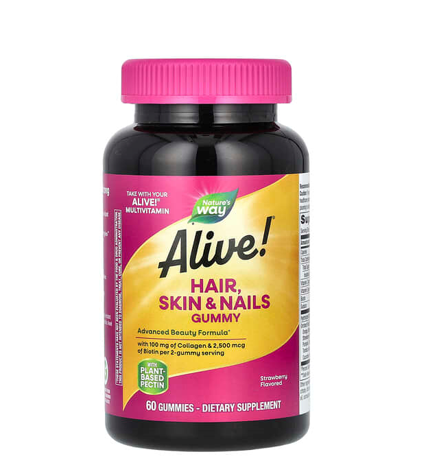 NATURES WAY ALIVE for hair, skin and nails x 60 gum tabl